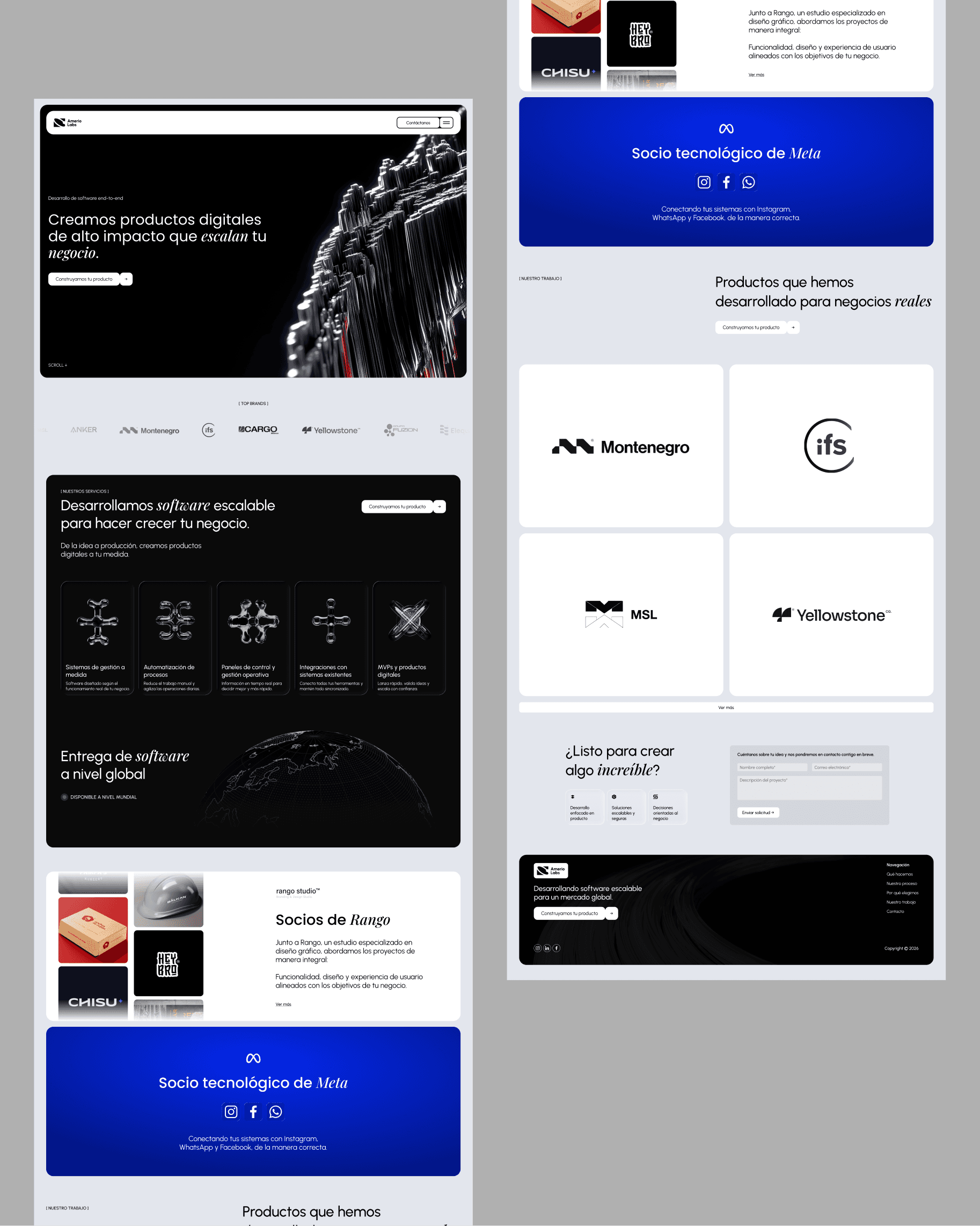 Se desarrolló el diseño web para Amerio Labs, una software factory enfocada en la creación de soluciones digitales modernas y escalables. El objetivo fue construir una experiencia clara y confiable, alineada con su posicionamiento tecnológico, transmitiendo innovación, solidez y una visión orientada al crecimiento.